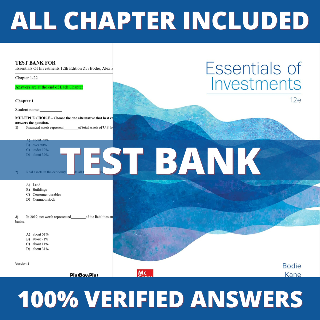 Test Bank for Essentials of Investments 12th Edition (Bodie, 2021)