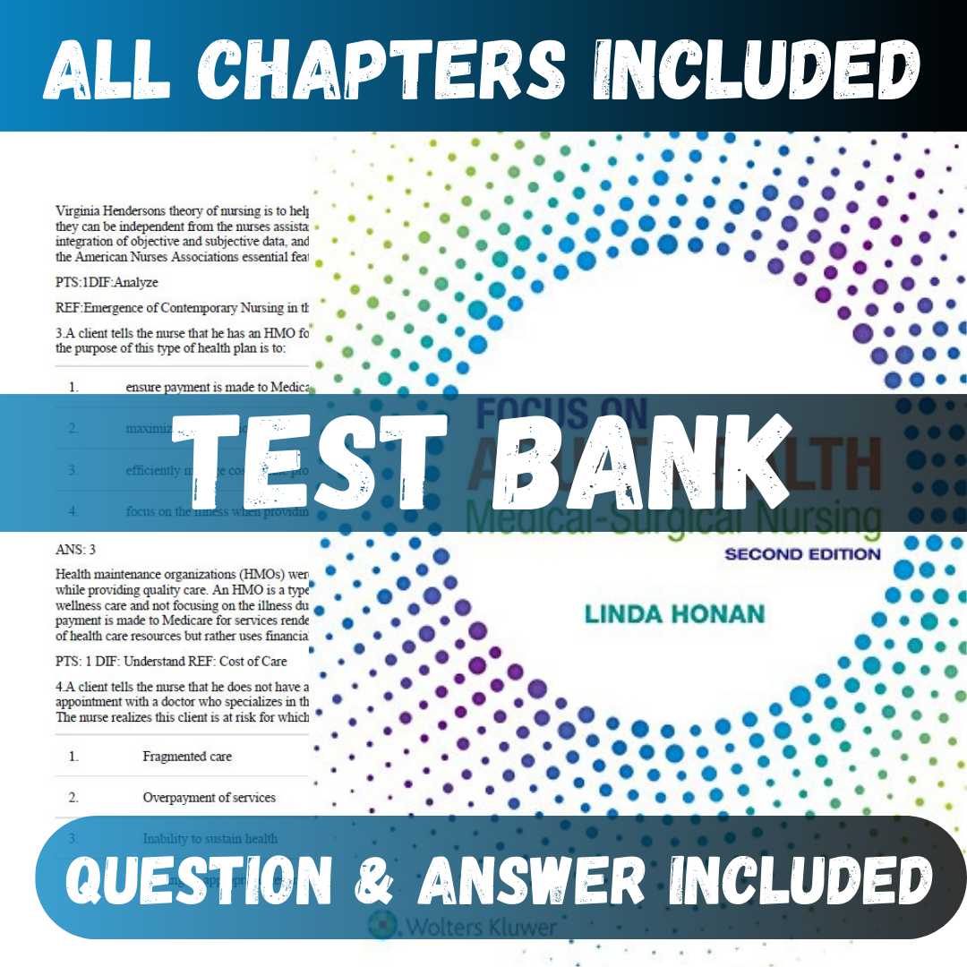 Test Bank for Focus on Adult Health: Medical-Surgical Nursing 2nd Edition (Linda Honan) | All Chapters Included