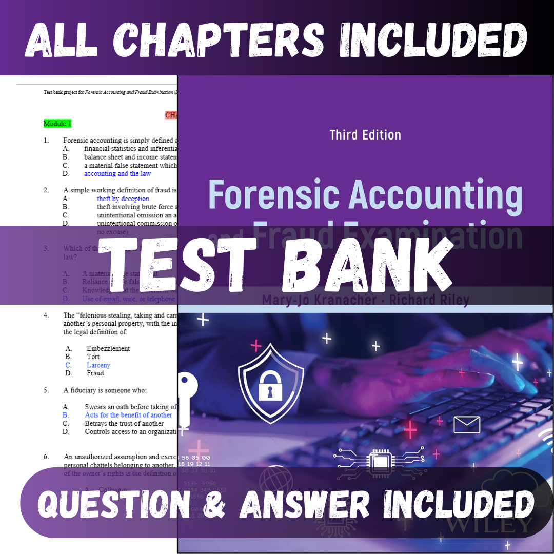 Test Bank for Forensic Accounting and Fraud Examination 3rd Edition (Mary-Jo) | All Chapters Included