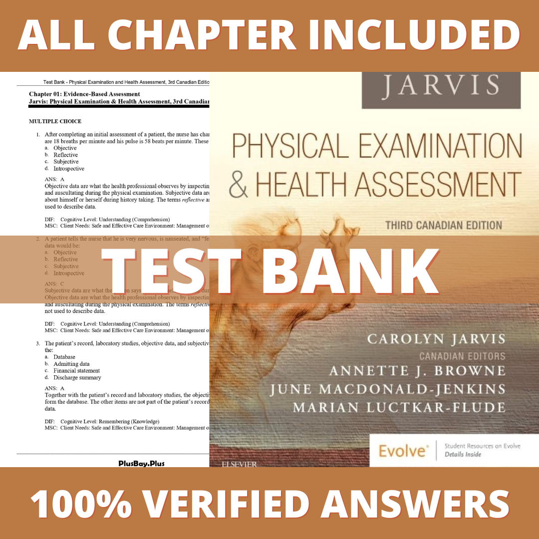 Test Bank for Physical Examination and Health Assessment, 3rd Canadian Edition (Jarvis, 2019)